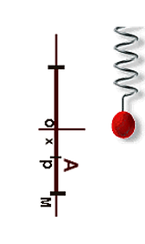 Observando el movimiento del resorte vemos que se desplaza entre dos puntos, desde la máxima compresión hasta la máxima elongación, pasando por un punto medio de equilibrio. A la distancia desde el punto medio a cualquiera de los extremos le llamamos AMPLITUD y la representamos por A.